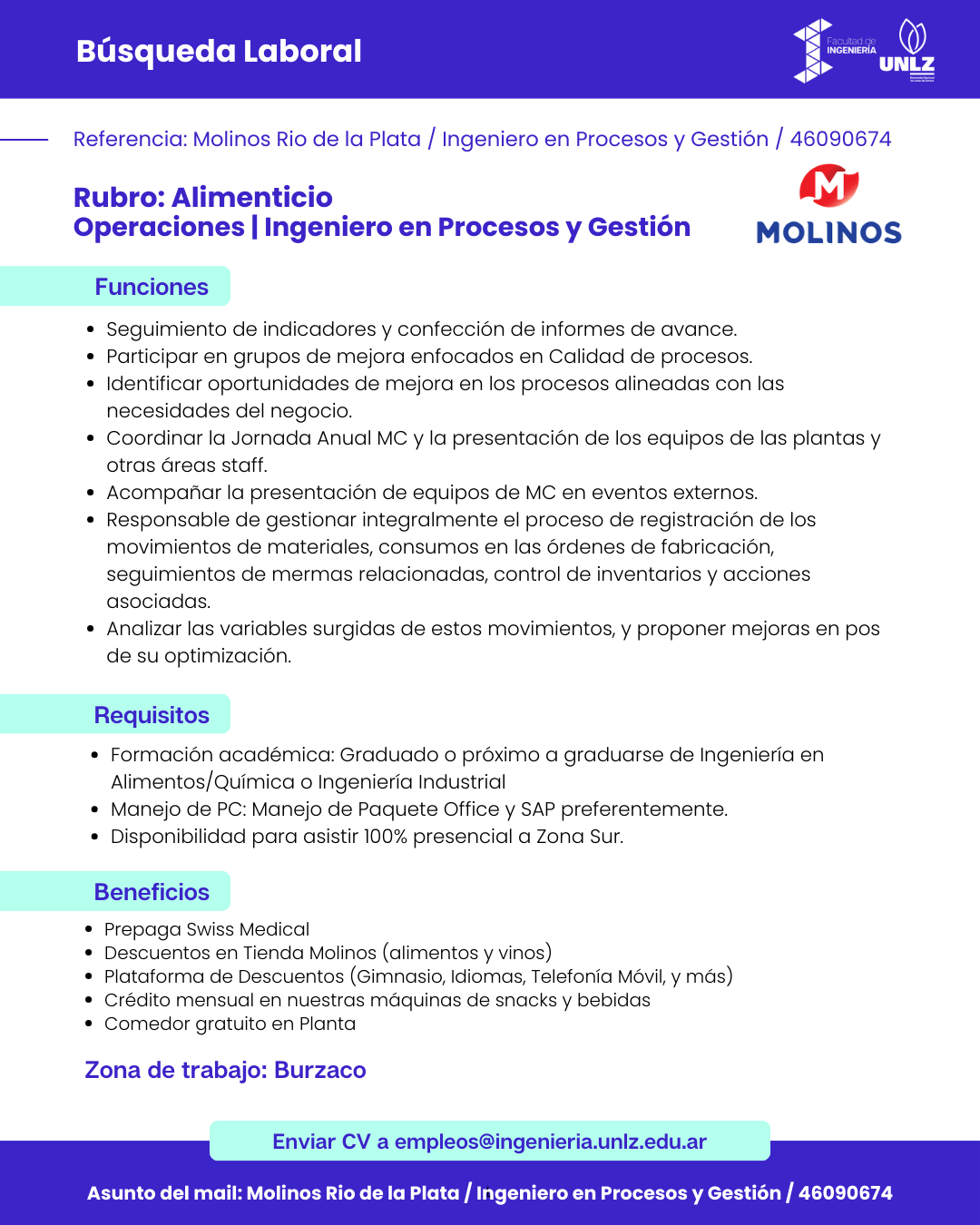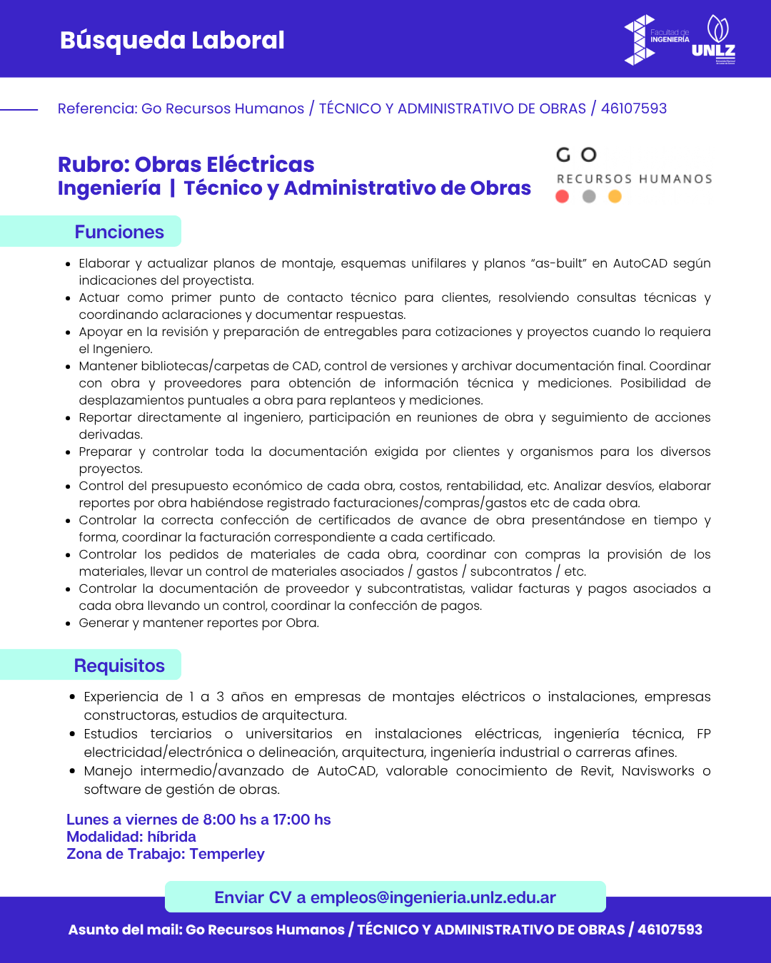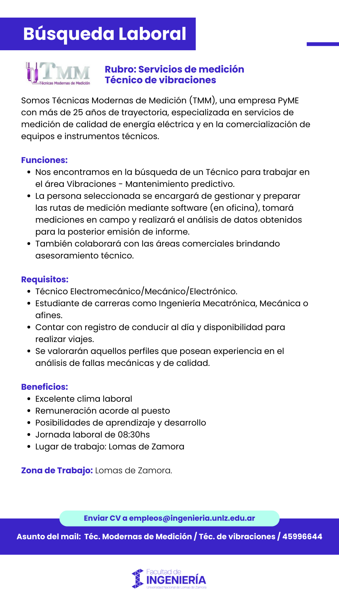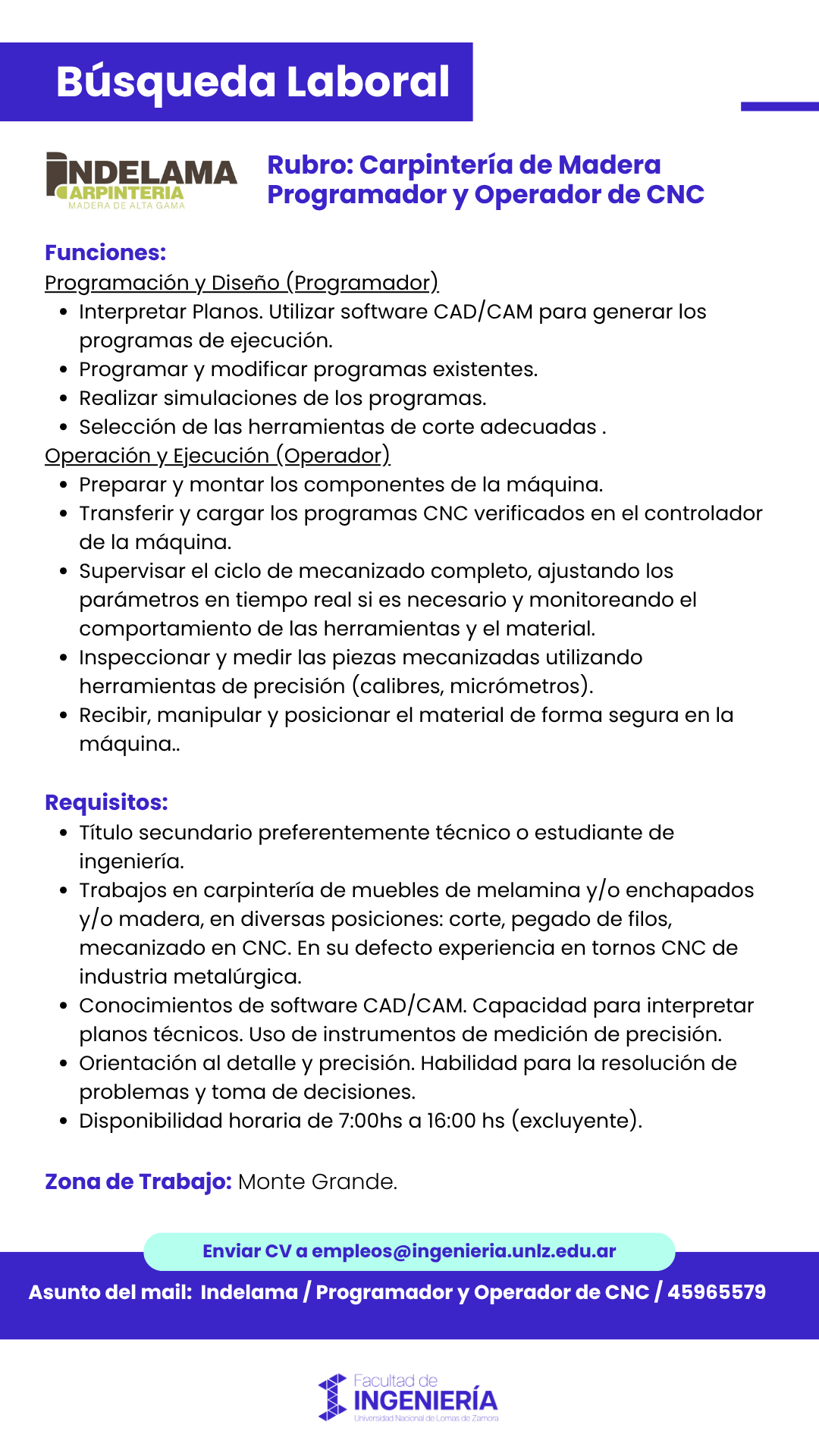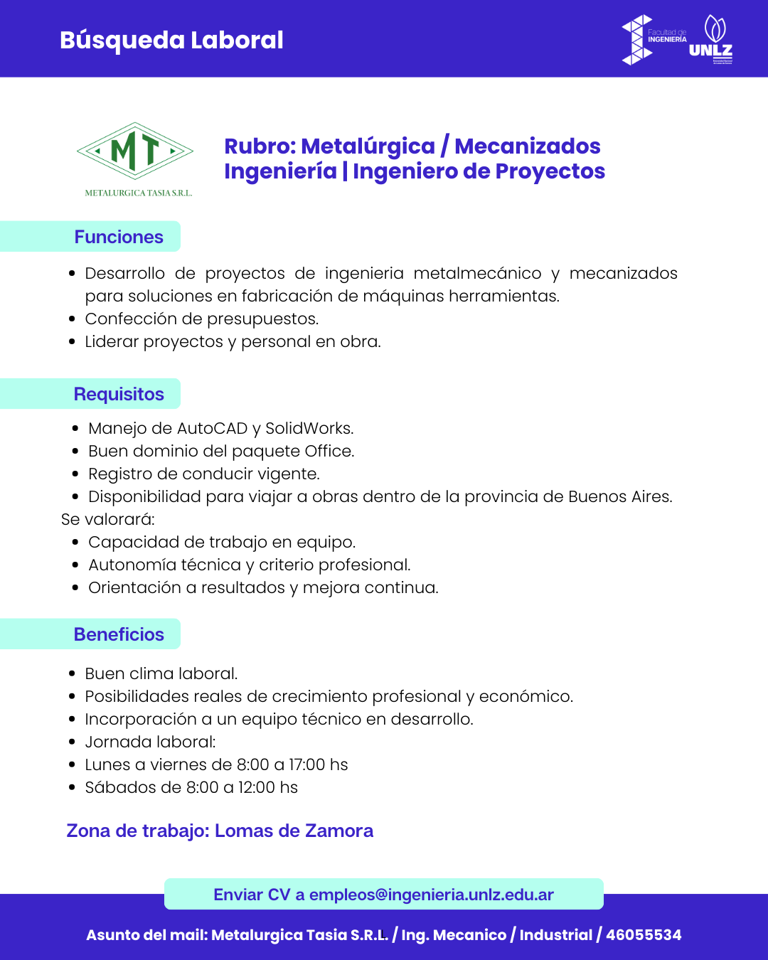 Encontrá las últimas búsquedas y postulate a la que sea de tu interés enviando un correo a empleos@ingenieria.unlz.edu.ar con tu Currículum Vitae e indicando en el asunto la Referencia de la publicación correspondiente.