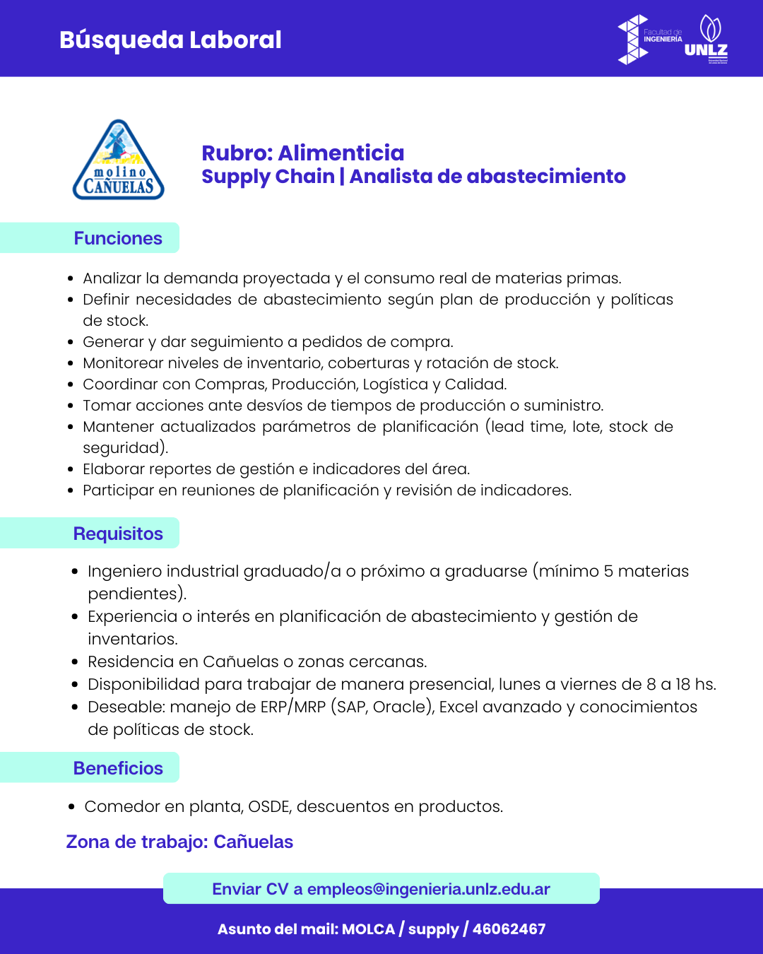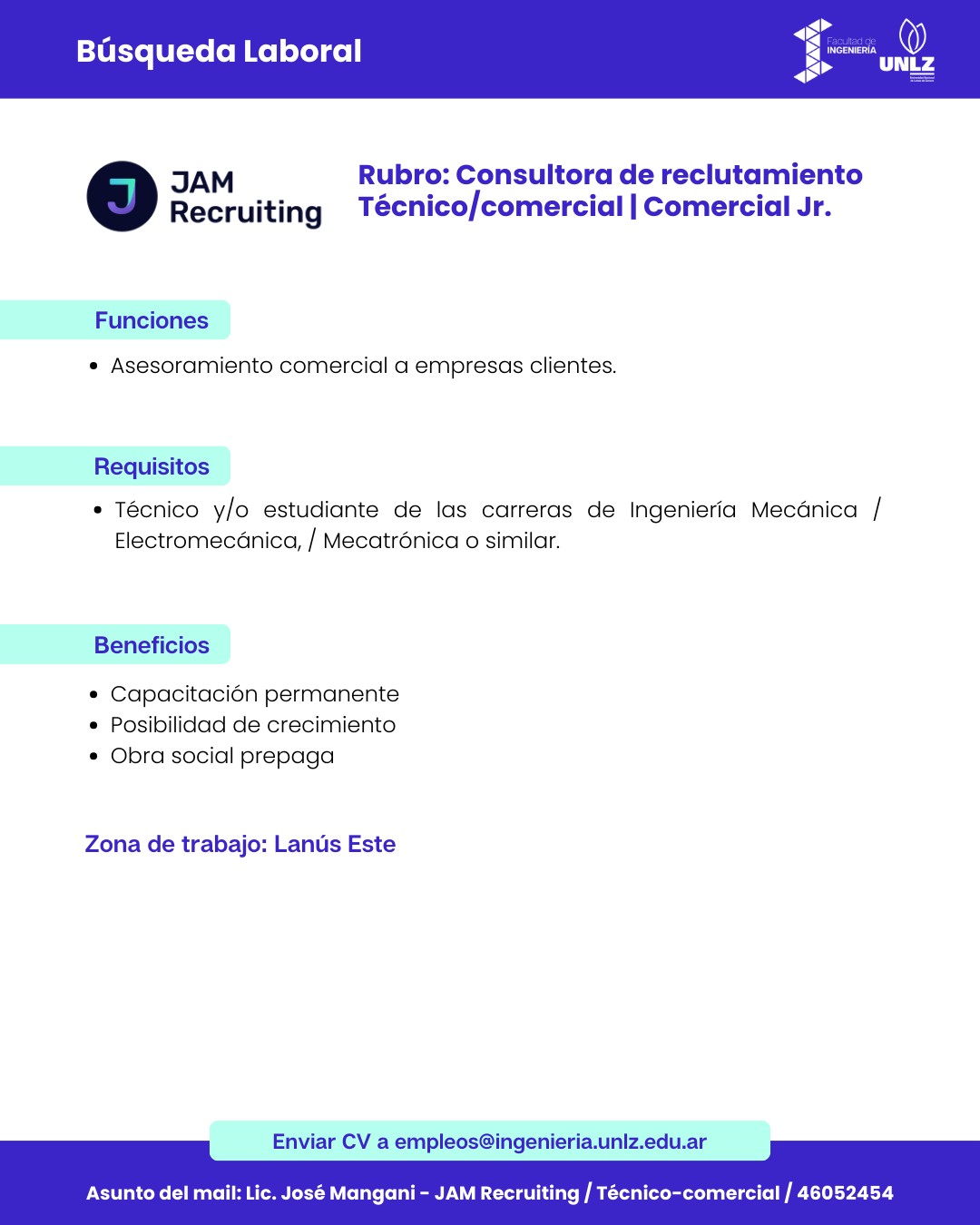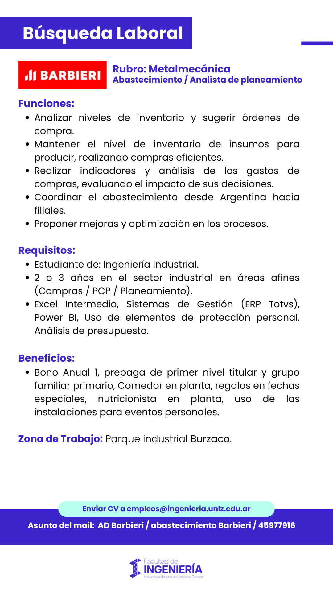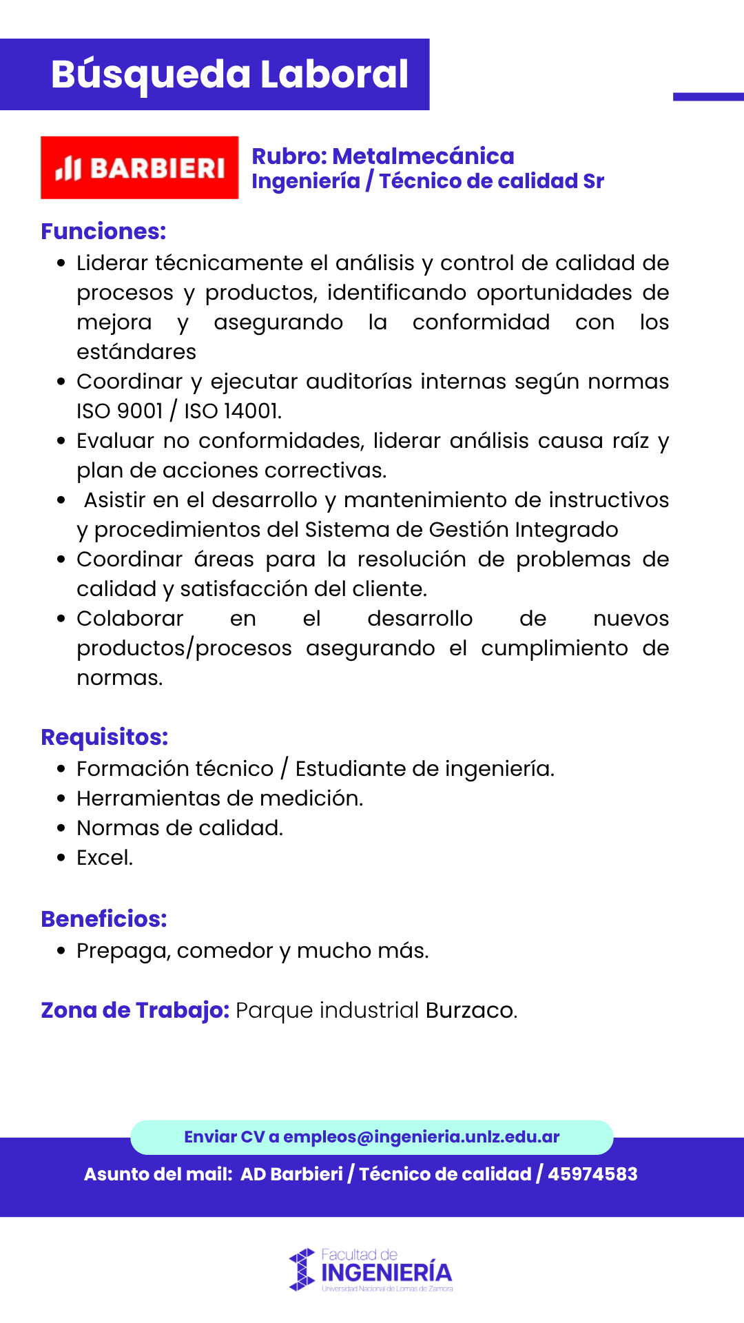 Encontrá las últimas búsquedas y postulate a la que sea de tu interés enviando un correo a empleos@ingenieria.unlz.edu.ar con tu Currículum Vitae e indicando en el asunto la Referencia de la publicación correspondiente.