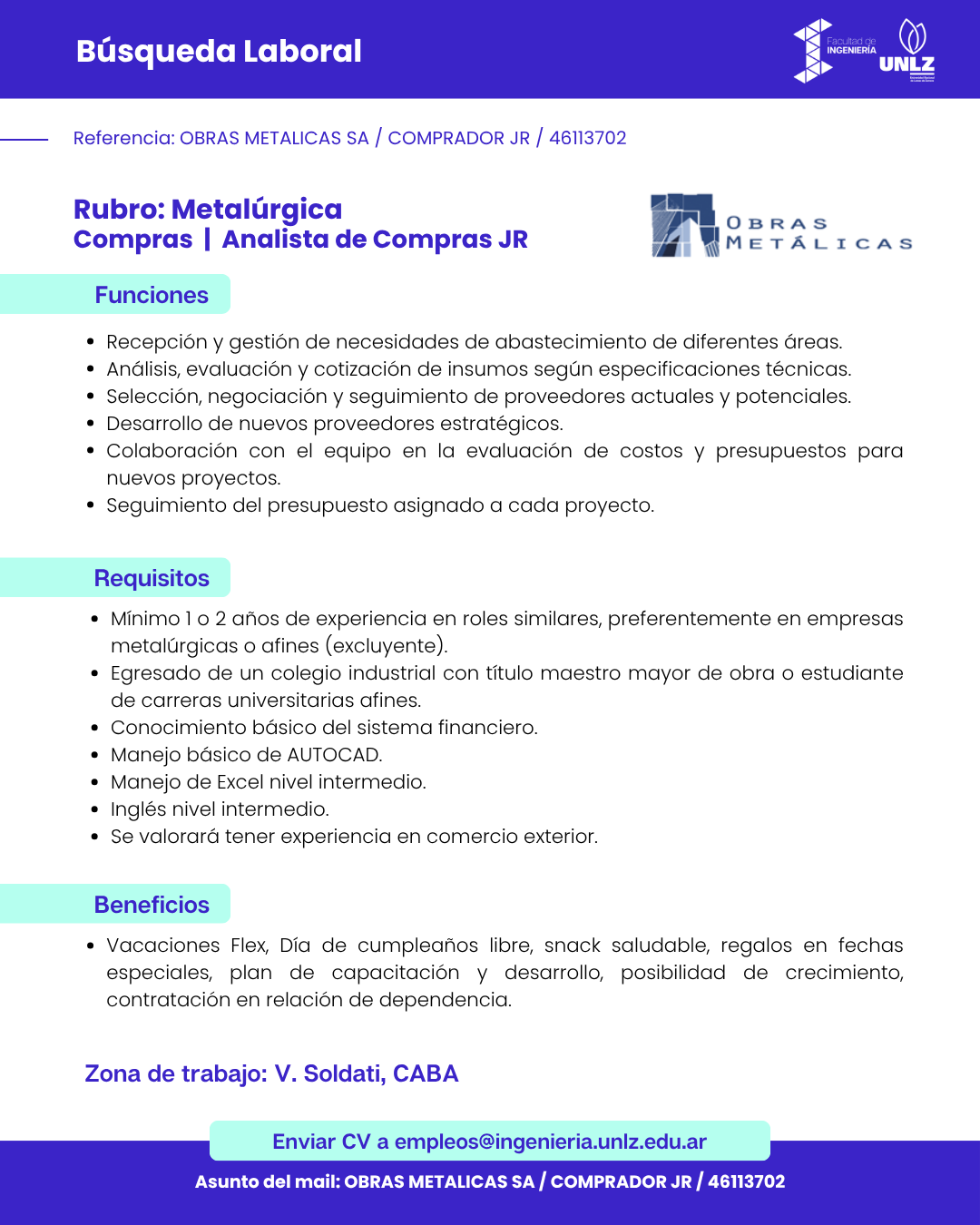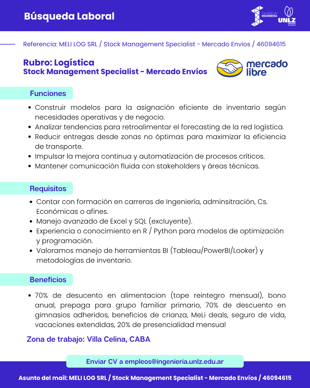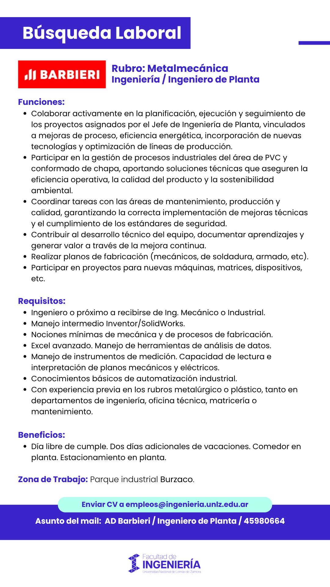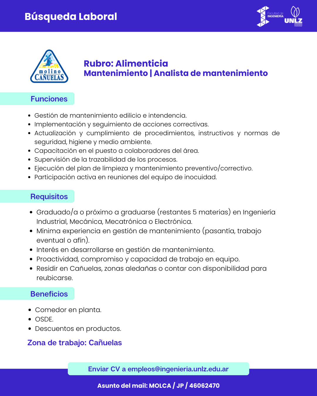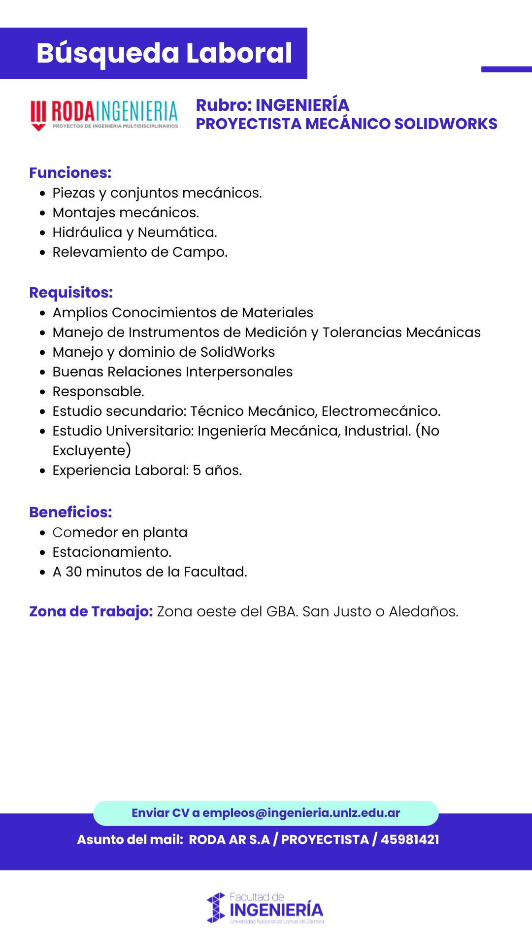 Encontrá las últimas búsquedas y postulate a la que sea de tu interés enviando un correo a empleos@ingenieria.unlz.edu.ar con tu Currículum Vitae e indicando en el asunto la Referencia de la publicación correspondiente.