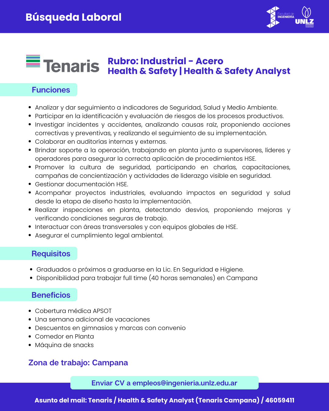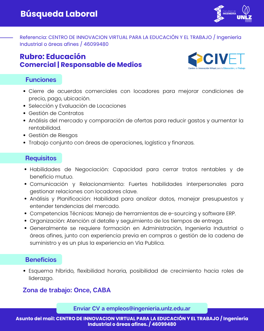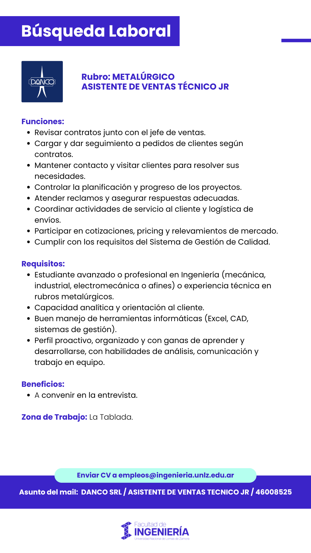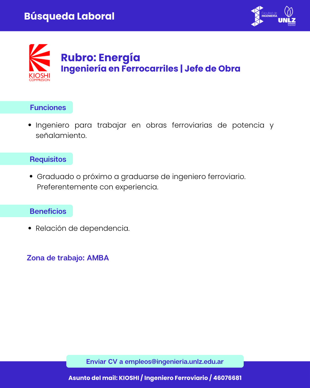 Encontrá las últimas búsquedas y postulate a la que sea de tu interés enviando un correo a empleos@ingenieria.unlz.edu.ar con tu Currículum Vitae e indicando en el asunto la Referencia de la publicación correspondiente.