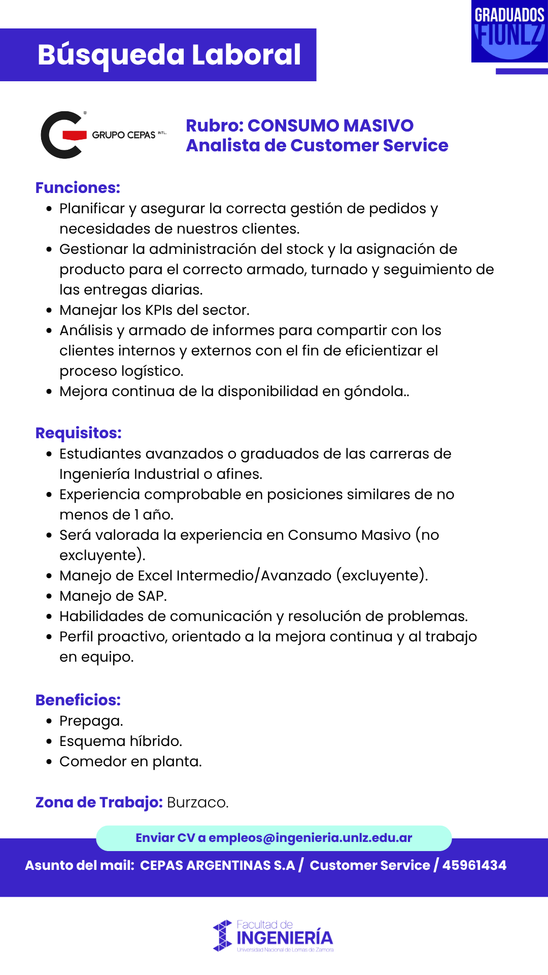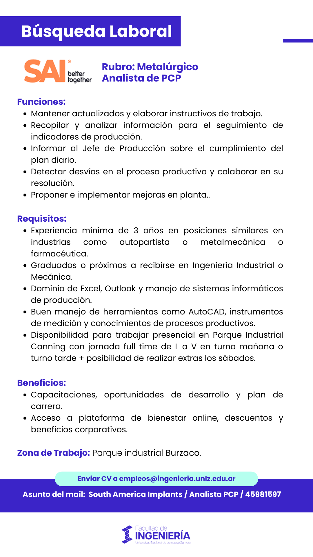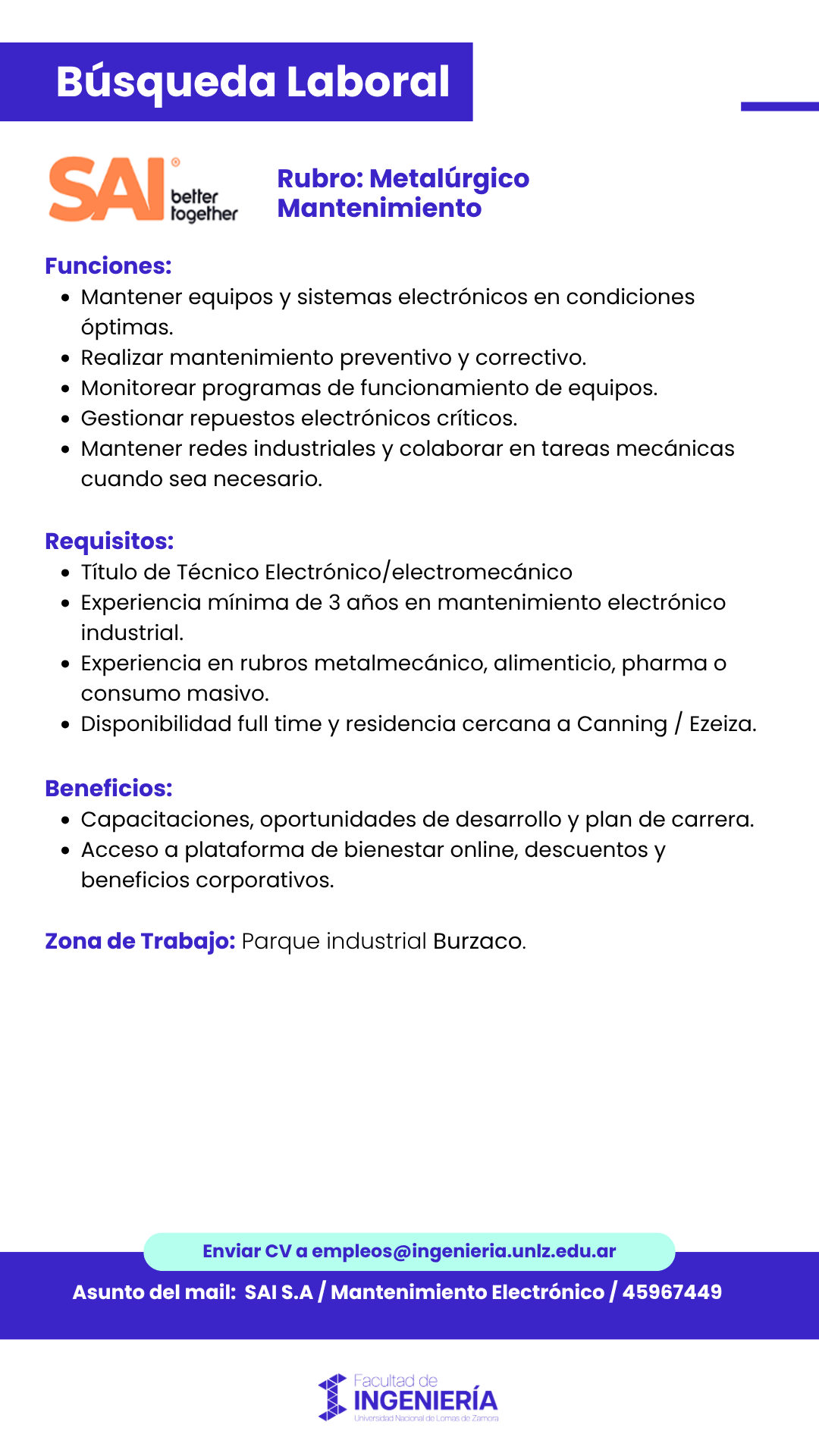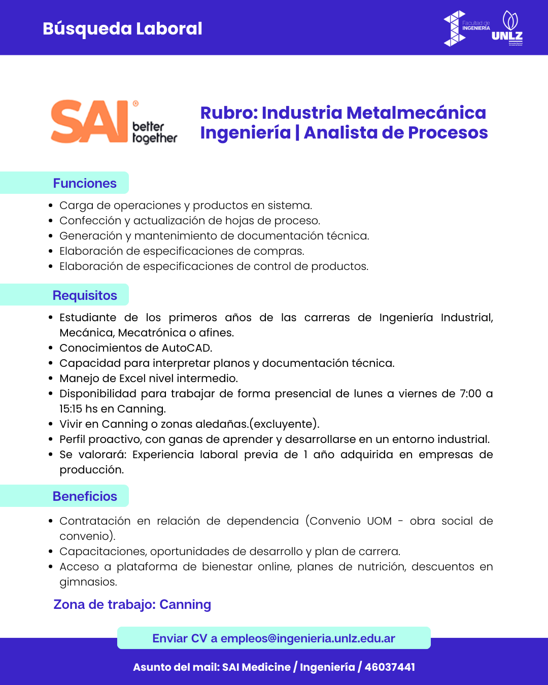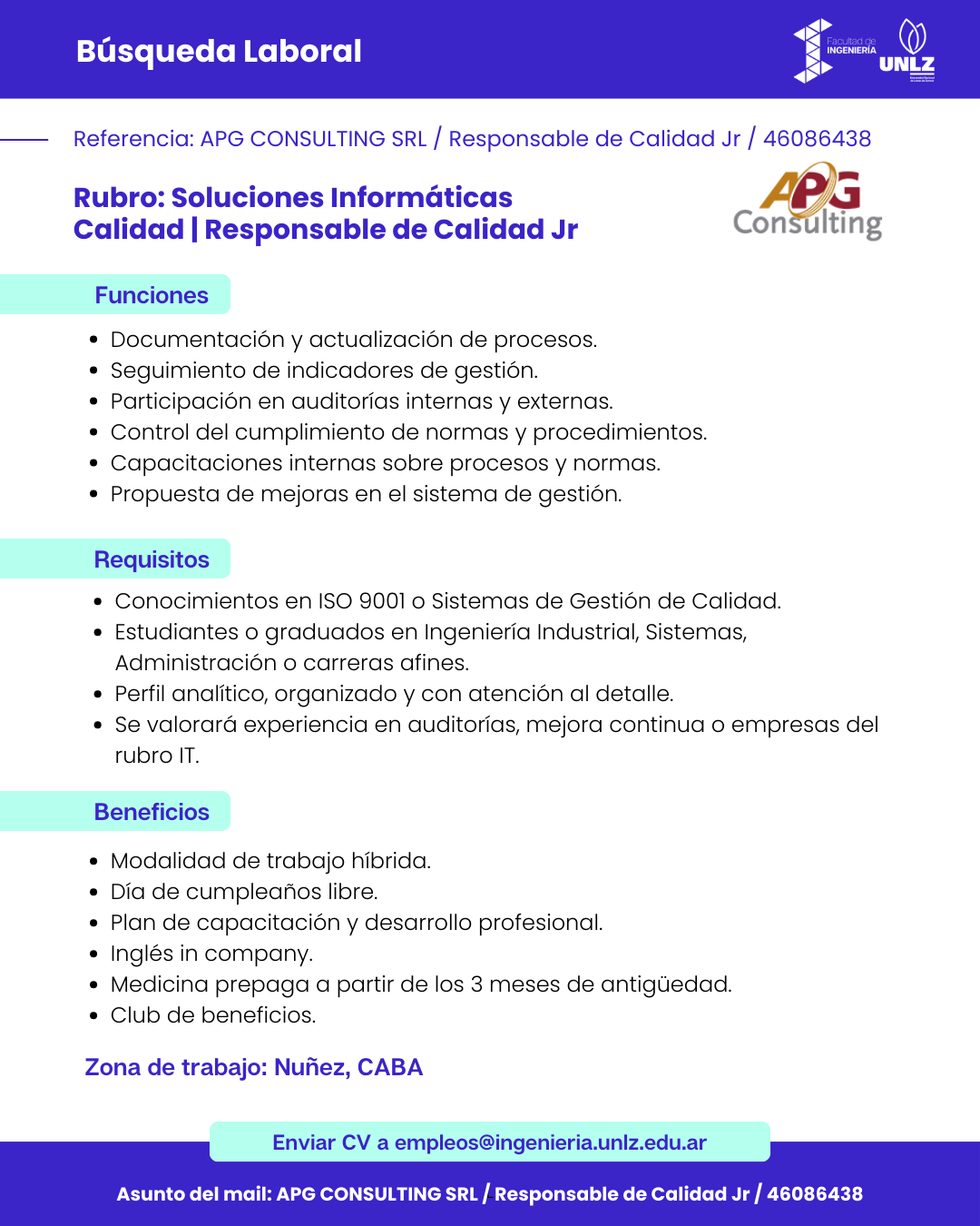 Encontrá las últimas búsquedas y postulate a la que sea de tu interés enviando un correo a empleos@ingenieria.unlz.edu.ar con tu Currículum Vitae e indicando en el asunto la Referencia de la publicación correspondiente.